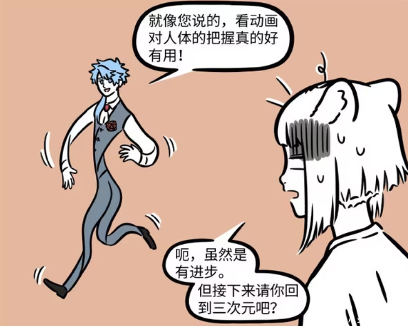 《非人哉》漫画版中,九月成为何理师父之后,教它掌握化形能力。全体化形行不通,那就尝试部分化形。何理部分化形能力掌握后,九月推荐它看动画作品。可是没想到何理最终变成纸片人。
