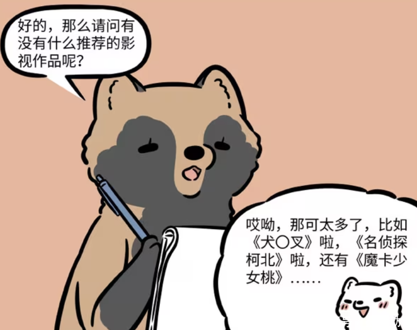 何理算是勤奋好学的学生,知道用笔记录下九月所说的话。它想知道看什么作品最为合适?九月告诉它可以看的有很多。比如她最爱的《犬夜叉》,九月当年化形为人类,就是模仿犬夜叉。再来就是《名侦探柯北》,其实就是《名侦探柯南》,这是九月最喜欢的推理动画。还有《魔卡少女桃》,说白了就是《魔法少女樱》,哪吒曾经也变身过。